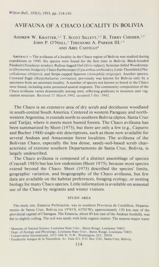 Published in The Wilson Bulletin, in 1993, in volume 105, issue 1, pages 114-141