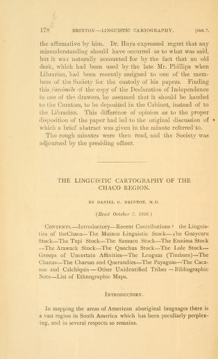 Published in Proceedings of The American Philosophical Society, in 1898, in volume 37, issue 158, pages 178-205