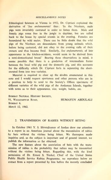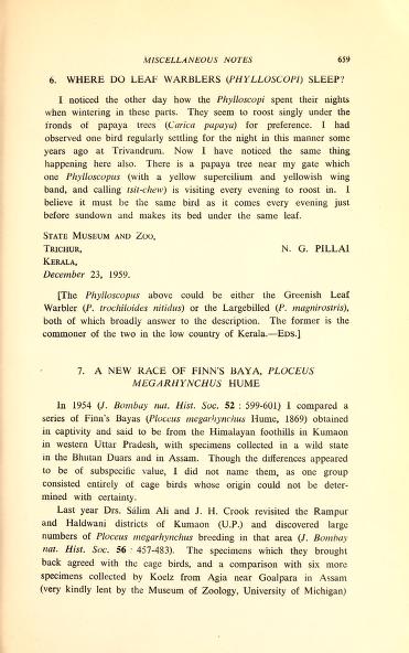 Published in Journal of The Bombay Natural History Society, in 1962, in volume 59, pages 283-285