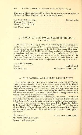 Published in Journal of The Bombay Natural History Society, in 1951, in volume 50, pages 176