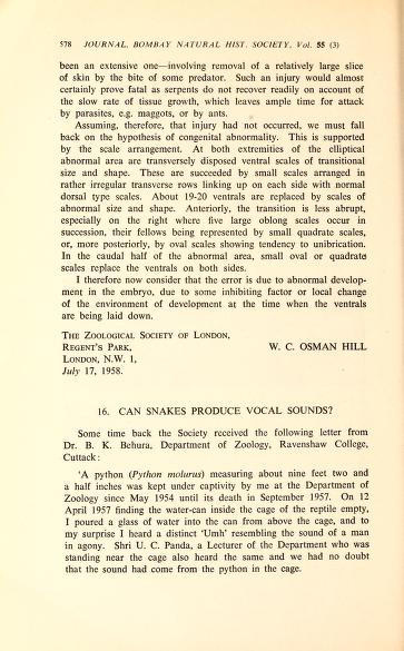 Published in Journal of The Bombay Natural History Society, in 1959, in volume 55, pages 578-579