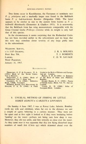 Published in Journal of The Bombay Natural History Society, in 1967, in volume 64, pages 557-558