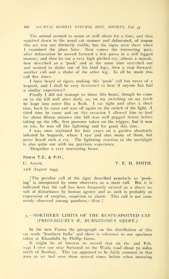 Published in Journal of The Bombay Natural History Society, in 1945, in volume 45, pages 600-601