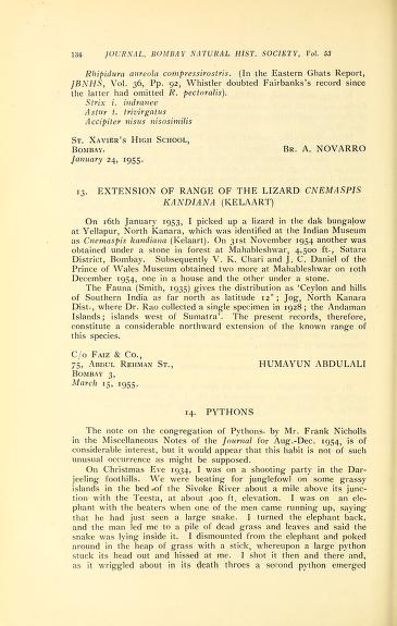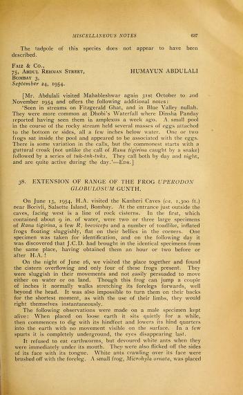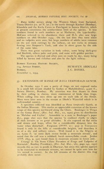 Published in Journal of The Bombay Natural History Society, in 1954, in volume 52, pages 637-639