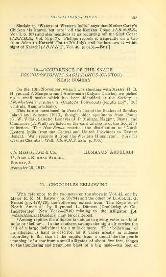 Published in Journal of The Bombay Natural History Society, in 1948, in volume 47, issue 3, pages 551