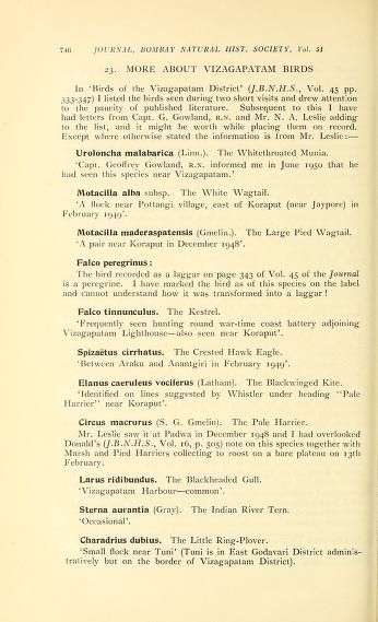 Published in Journal of The Bombay Natural History Society, in 1953, in volume 51, pages 746