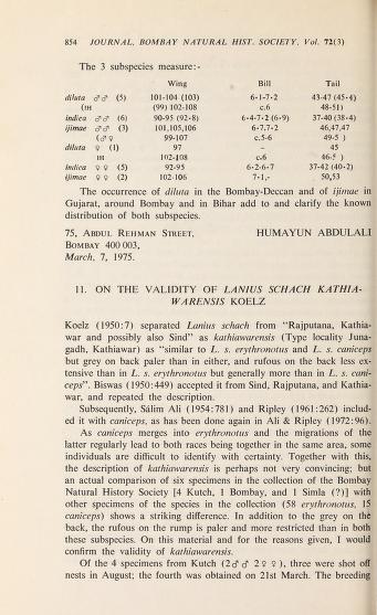 Published in Journal of The Bombay Natural History Society, in 1976, in volume 72, issue 3, pages 854-855