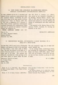 Published in Journal of The Bombay Natural History Society, in 1968, in volume 65, pages 219-221
