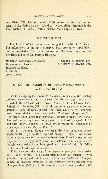 Published in Bulletin of The British Ornithologists' Club, in 1967, in volume 87, pages 33-34