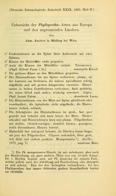 Published in Deutsche Entomologische Zeitschrift, in 1885, in volume 1885, issue 1, pages 193-216