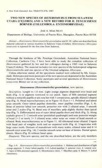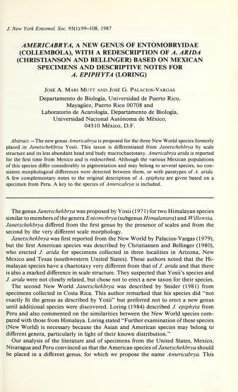 Published in Journal of The New York Entomological Society, in 1987, in volume 95, issue 1, pages 99-108