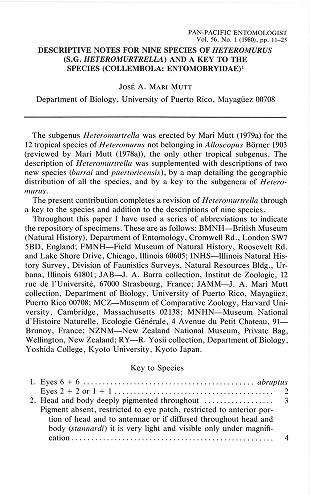 Published in Pan-Pacific Entomologist, in 1980, in volume 56, issue 1, pages 11-25