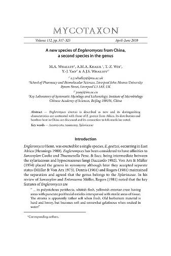 Published in Mycotaxon, in 2010, in volume 112, issue 1, pages 317-323