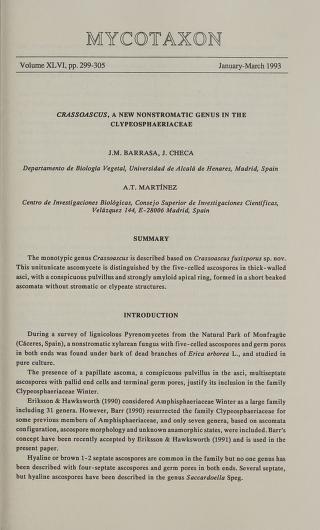 Published in Mycotaxon, in 1993, in volume 46, pages 299-305