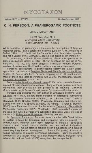 Published in Mycotaxon, in 1992, in volume 45, pages 257-258