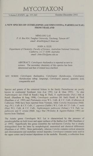 Published in Mycotaxon, in 2002, in volume 84, pages 355-360