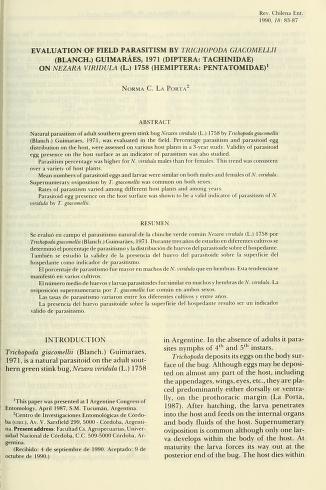 Published in Revista Chilena de Entomología, in 1990, in volume 18, pages 83-87