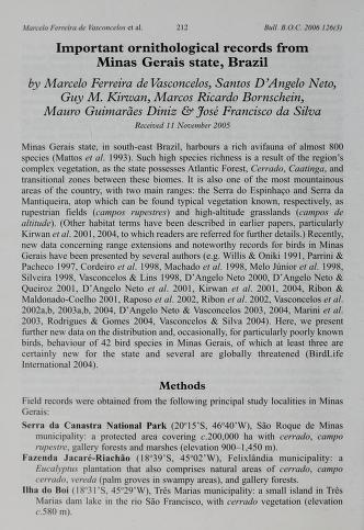 Published in Bulletin of The British Ornithologists' Club, in 2006, in volume 126, issue 3, pages 212-238