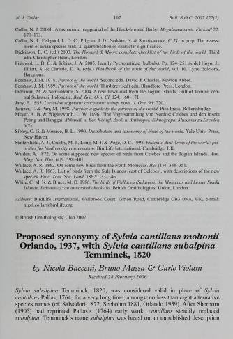 Published in Bulletin of The British Ornithologists' Club, in 2007, in volume 127, pages 107-110