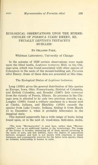 Published in Psyche: A Journal of Entomology, in 1929, in volume 36, issue 3, pages 195-215