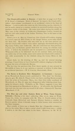 Published in The Auk, in 1905, in volume 22, pages 81-82