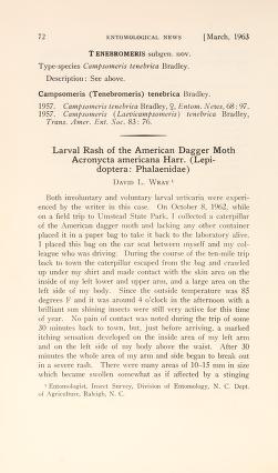 Published in Entomol News, in 1963, in volume 74, pages 72-74
