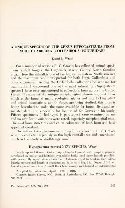Published in Entomological News, in 1971, in volume 82, pages 147-150