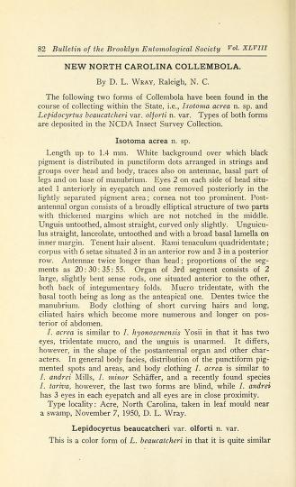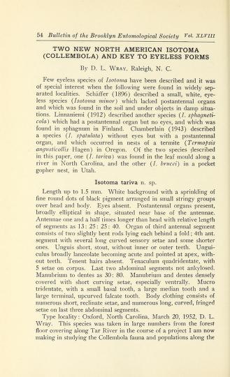 Published in Bulletin of the Brooklyn Entomological Society, in 1953, in volume 48, pages 82-83