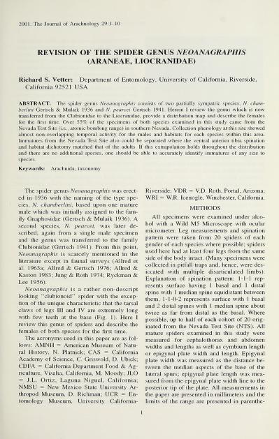 Published in Journal of Arachnology, in 2001, in volume 29, issue 1, pages 1-10