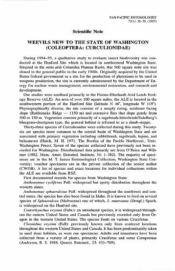 Published in Pan-Pacific Entomologist, in 1997, in volume 73, issue 1, pages 58-59
