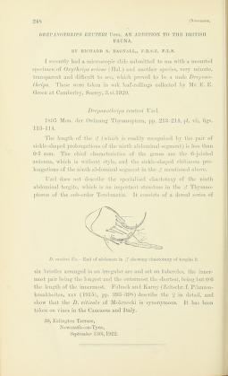 Published in XII. Annals and Magazine of Natural History, in 1921, in volume 8, pages 393-400