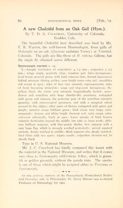 Published in Entomological News, in 1911, in volume 22, issue 2, pages 82