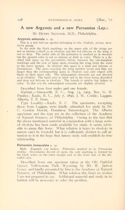 Published in Entomological News Philadelphia, in 1911, in volume 22, pages 108
