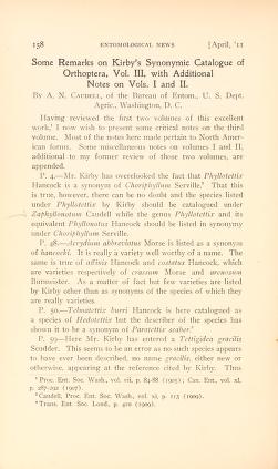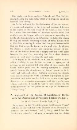 Published in Entomological News, in 1911, in volume 22, pages 158-167