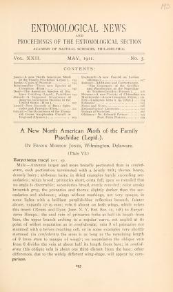 Published in Entomological News Philadelphia, in 1911, in volume 22, pages 3-4