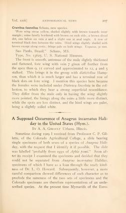 Published in Entomological News, Philadelphia, in 1911, in volume 22, pages 289-292