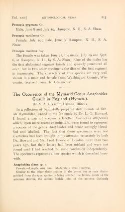 Published in Entomological News, in 1911, in volume 22, pages 215-216