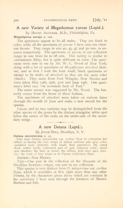 Published in Entomological News Philadelphia, in 1911, in volume 22, pages 300