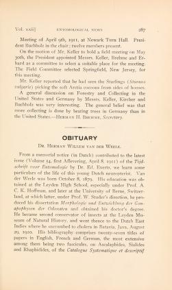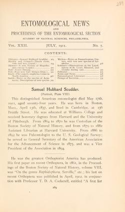 Published in Entomological News, Philadelphia, in 1911, in volume 22, pages 287-288
