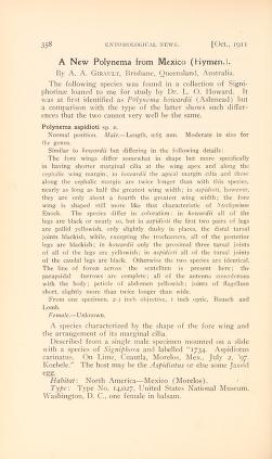 Published in Entomological News, in 1911, in volume 22, pages 358