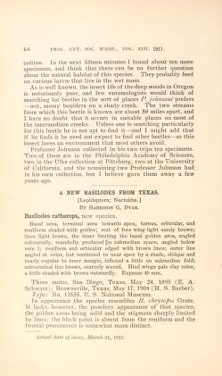 Published in Proceedings of The Entomological Society of Washington Dc, in 1911, in volume 13, pages 64