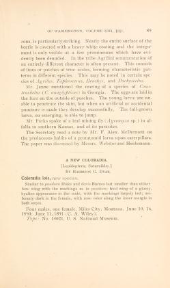 Published in Proceedings of The Entomological Society of Washington Dc, in 1911, in volume 13, pages 89