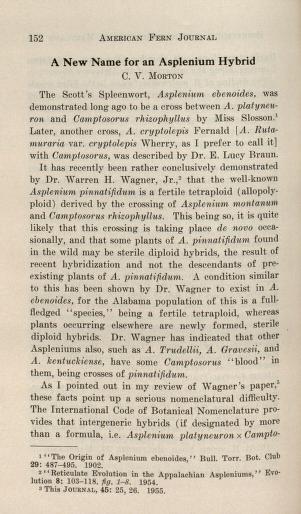 Published in American Fern Journal, in 1956, in volume 46, issue 4, pages 152