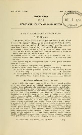 Published in Proceedings of The Biological Society of Washington, in 1958, in volume 71, pages 153-154