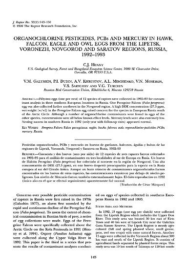 Published in Journal of Raptor Research, in 1998, in volume 32, issue 2, pages 143-150