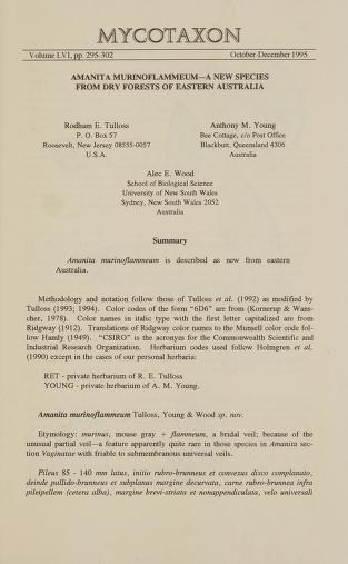 Published in Mycotaxon, in 1995, in volume 56, pages 295-302