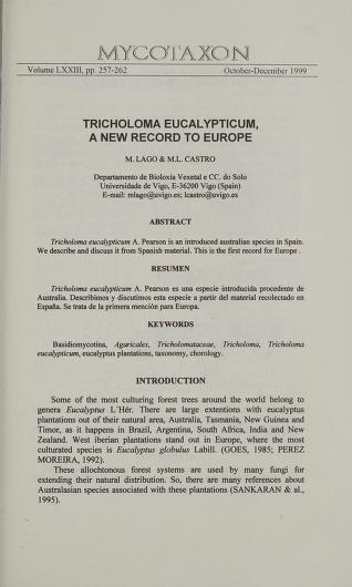 Published in Mycotaxon, in 1999, in volume 73, pages 257-262