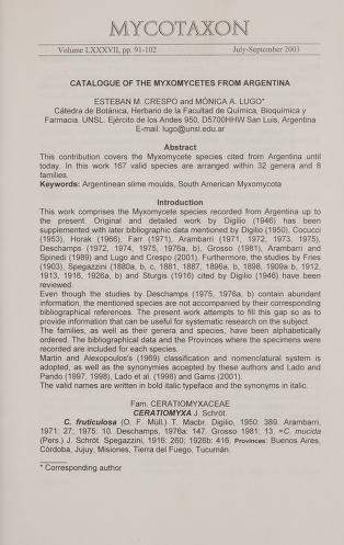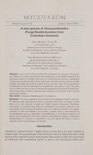 Published in Mycotaxon, in 2003, in volume 87, pages 91-102