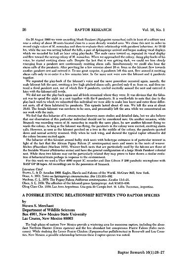Published in Raptor Research, in 1982, in volume 16, issue 1, pages 26-27