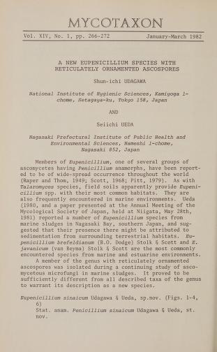Published in Mycotaxon, in 1982, in volume 14, issue 1, pages 266-272